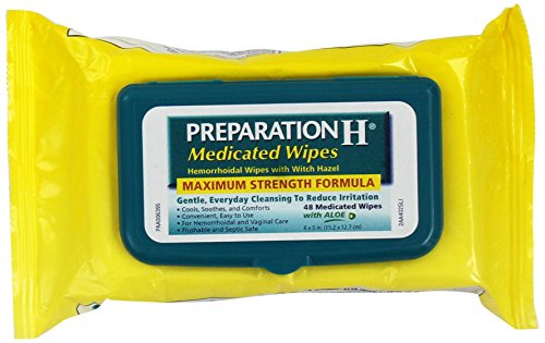 -. Binding : Health and Beauty -. Brand : Preparation H -. Label : Preparation H -. Manufacturer : Preparation H -. ProductGroup : Health and Beauty -. ProductTypeName : HEALTH_PERSONAL_CARE -. Publisher : Preparation H -. Studio : Preparation H -. Title : Preparation H Medicated Hemorrhoidal Wipes with Witch Hazel and Aloe, 48-Count Refill Package