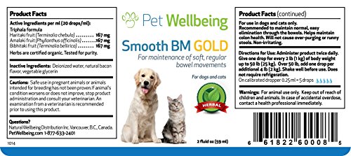 -. Binding : Misc. -. Brand : Pet Wellbeing -. EAN : 0640970729732 -. Feature : For maintenance of soft, regular bowel movements in cats / Supports colon health / Enables normal, easy elimination through the bowel / Will not cause over-purging or runny stools / Non-irritating and safe for long-term use -. Label : Pet Wellbeing -. Manufacturer : Pet Wellbeing -. MPN : PW 0008C -. PackageQuantity : 1 -. PartNumber : PW 0008C -. ProductGroup : Pet Products -. ProductTypeName : PET_SUPPLIES -. Publisher : Pet Wellbeing -. Studio : Pet Wellbeing -. Title : Pet Wellbeing Smooth BM Gold for Cats - Natural Constipation Support for Felines - 2oz (59ml) -. UPC : 661822600085
