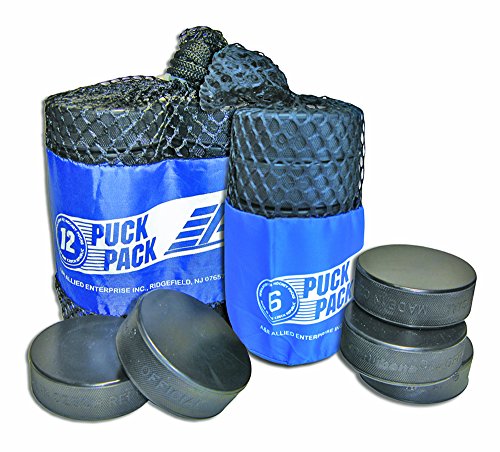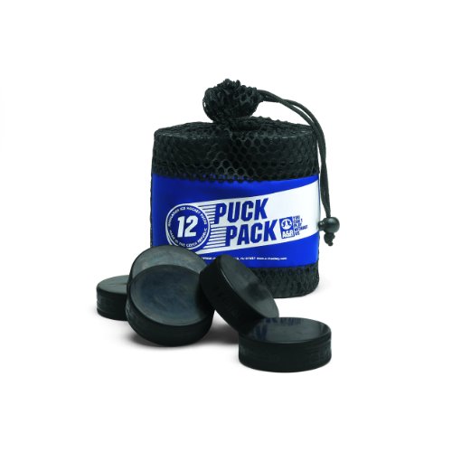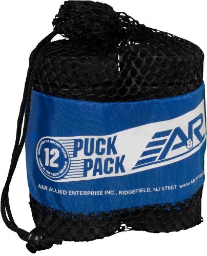 Product Description AR's 12-pack bag of pucks features an durable, open-close, reusable mesh bag that's filled with 12 regulation ice hockey pucks made in The Czech Republic. Great for practice or play. 0