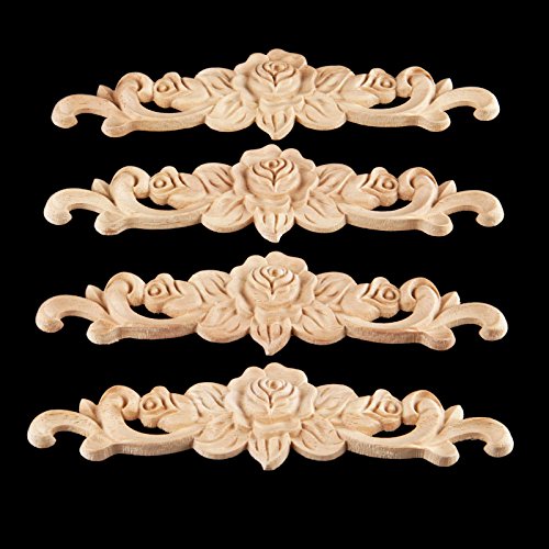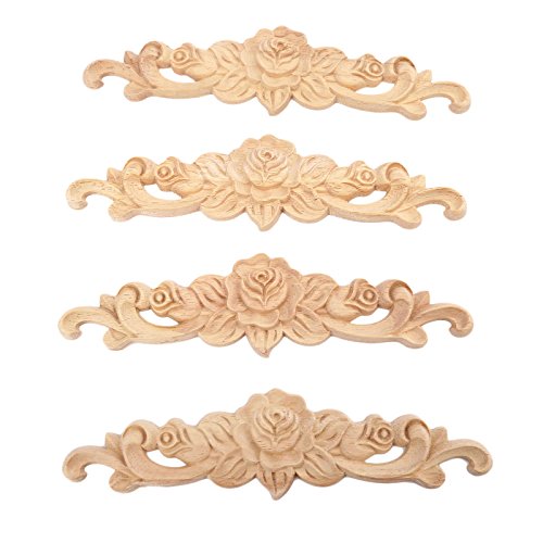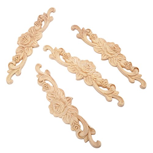 4pcs 20x5cm Wood Carved Long Onlay Applique Unpainted Rose Flower Door Home Decor European Style