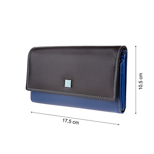 Brand:?DuDu® Material:?soft genuine calfskin leather Dimension (refer when wallet is closed):?17,5 x 10,5 x 3 cm Weight:?170 g Box:?Included Type:?Ladies Composition: 3 internal compartments with bellows, one of this divided in the middle, 8 credit cards pockets, 1 external zip pocket,?1 inner coin purse zip pocket and 3 extra pockets Available colours: Black, Safari, Dark brown, Red, Fuchsia, Violet, Blue, Mauve, Woods. All multicolour