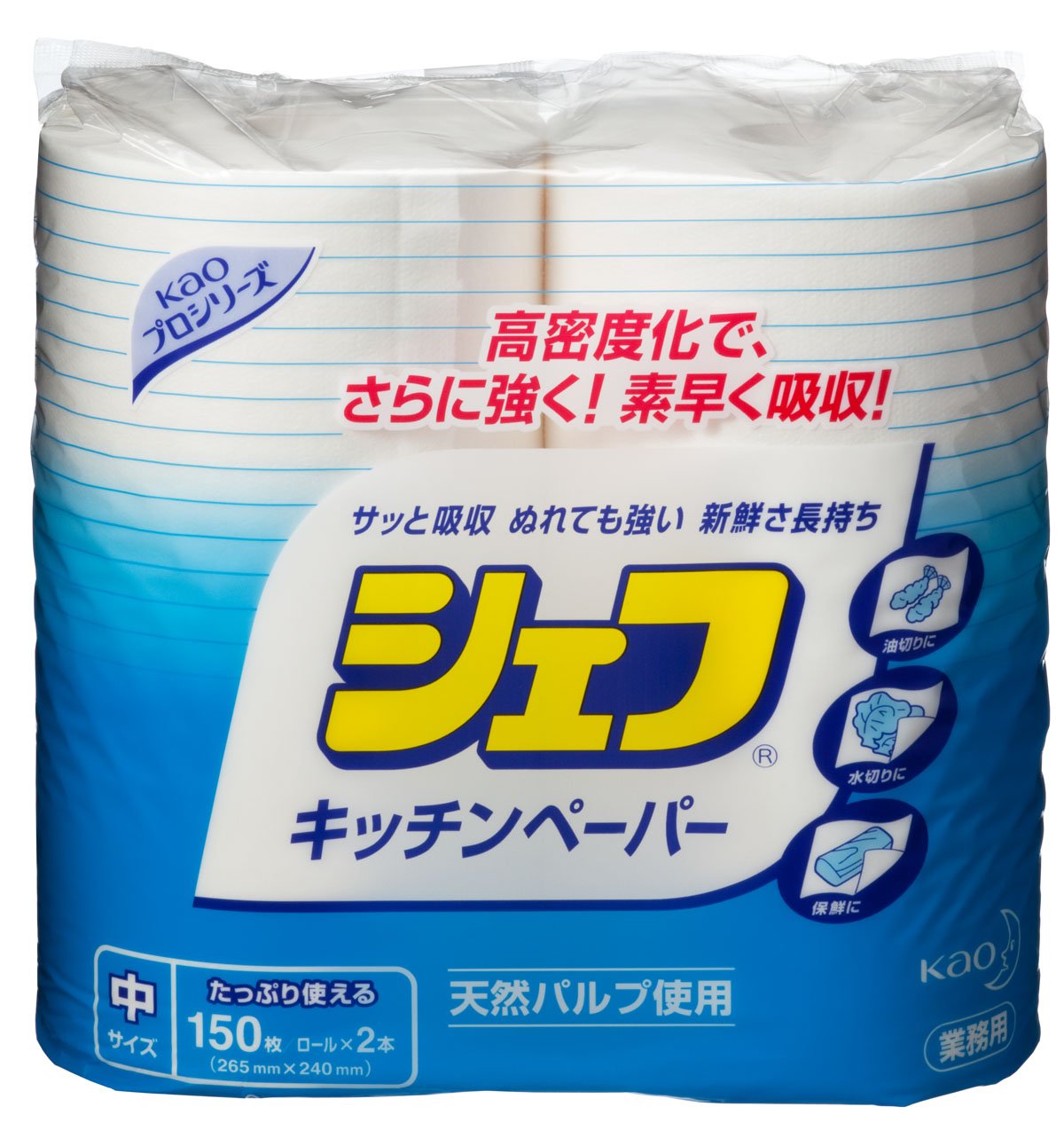 商品紹介●油切れ・水切れのよい吸収力●ぬれても丈夫な耐水力●食材の鮮度を保つ保水力●用途:天ぷら・揚げ物等の油切り・生鮮品や野菜類の鮮度保持、野菜の水切りや鮮魚の表面のふきとり、油・出し汁こし、フライパンの汚れふき、テーブル・調理台の汚れふき●型番:388548●シートサイズ(mm):265×240●入数:1袋(150シート/巻×2巻)●材質:天然パルプ使用上の注意※事業者向け用商品です