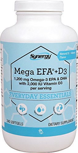 What is Vitacost Mega EFA-D3?Vitacost Mega EFA-D3 Omega-3 EPA & DHA is a premium-quality fish oil supplement delivering high elemental levels of two of the most-studied omega-3 essential fatty acids: EPA and DHA. Also included is 2,000 IU of vitamin D in its superior form, vitamin D3 (cholecalciferol) per 2-softgel serving.Omega-3 fatty acids are essential to the body and must be obtained through diet. Fatty fish, such as cod, tuna and salmon, are the best source, but they can also be found in some plant sources and in flaxseed, walnuts and soybeans. Most people do not eat enough of these foods, however, to obtain optimal amounts of omega-3 nutrients. In this case, taking a supplement such as Vitacost Mega EFA-D3 may be beneficial.Vitamin D is a fat-soluble vitamin that plays a role in bone health, immune health and more.* Vitamin D3 (cholecalciferol) is a preferred form of vitamin D and the same type naturally produced by skin when exposed to sunlight. Unlike other low-cost, low-grade fish oil supplements, which may contain traces of dioxin, mercury, PCBs and other environmental contaminants, Vitacost Mega EFA-D3 has been molecularly distilled to guarantee the freshest, purest product. Mega EFA also contains a higher milligram-per-serving amount of omega-3 fatty acids than other brands, with 800 mg of EPA and 400 mg of DHA in each two-softgel serving.How does Vitacost Mega EFA-D3 support health?EPA and DHA are well known for their cardioprotective properties, their ability to maintain healthy cognitive function, their potential to support healthy moods and their positive impact on joint comfort and flexibility*Higher blood levels of omega-3 essential fatty acids including EPA and DHA are associated with a healthier mood*Vitamin D promotes strong, healthy bones and peak immune system function*Why choose Vitacost Mega EFA-D3?Provides higher milligram-per-serving amount than other fish oil supplements (EPA = 800 mg and DHA = 400 mgin each two-softgel ...Feature