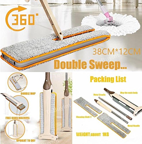 2Pcs Mop Cloth Total, Kemilove Lazy Double Sided Mop And 360 Spin Automatic Squeeze 38cm Mop