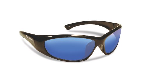 Flying Fisherman Fluke Jr. Angler Polarized Sunglasses (Shiny Black Frame, Smoke/Blue Mirror Lenses)