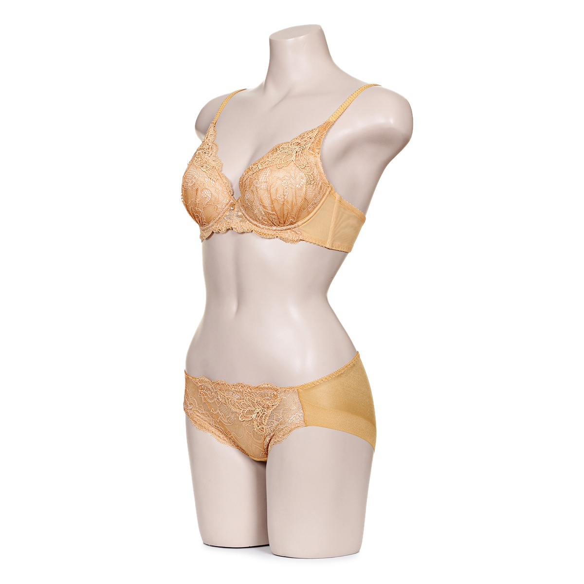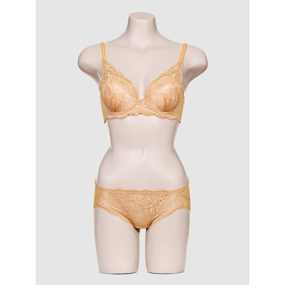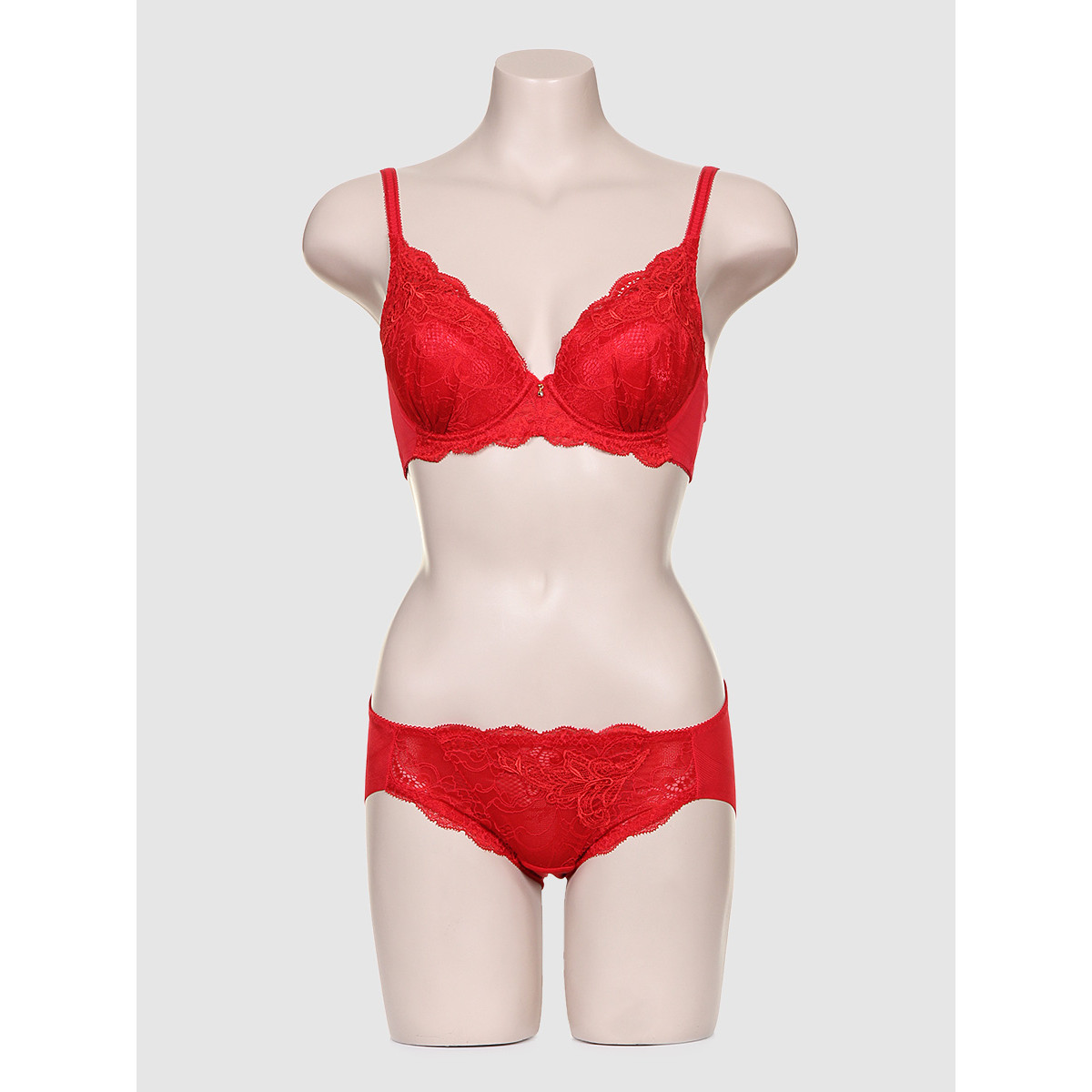 부드러운 레이스와 섬세한 캐미컬 자수를 매치해 여성스러운 분위기를 연출한 부직포 브라와 노라인 햄 팬티 세트입니다. 시즌 컬러인 고급스러운 옐로우와 레드 컬러로 구성되어 있으며, 풀 슬립까지 풀 세트로 구성되어 있습니다. 브라는 일반 3/4컵보다 가슴을 더욱 감싸며 패드 주머니가 설계되어 있고, 88사이즈인 90사이즈까지 출시되었습니다. 팬티는 햄 원단이 힙 라인을 깔끔하게 정리해 주어 밀착되는 겉옷에도 라인이 비치지 않습니다.