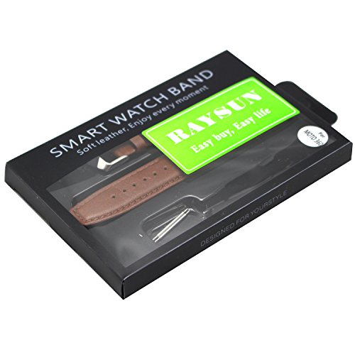 RAYSUN Replacement 22mm Width Brown Genuine Leather Anti-slip Watch Band for Motorala Moto 360 Smart Watch (Brown Genuine Leather)