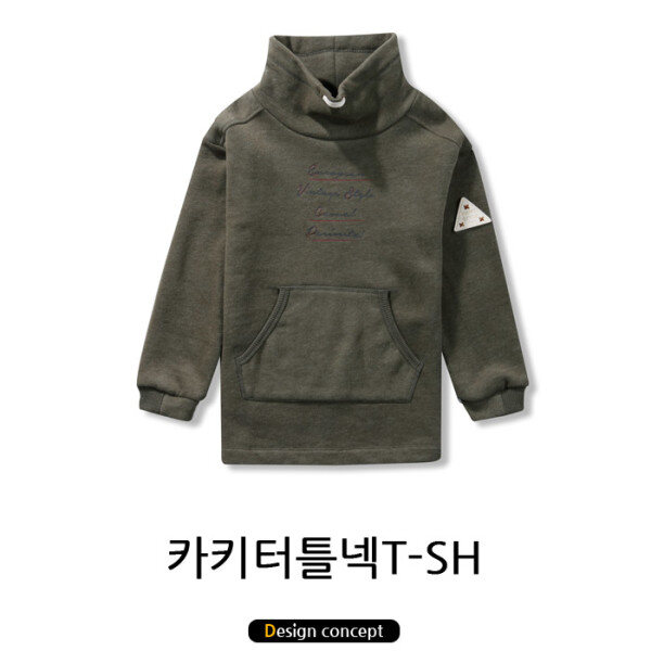 카키컬러의 양기모쮸리기모 티셔츠로 스판소재의 터들넥이 올라온 티셔츠입니다.
