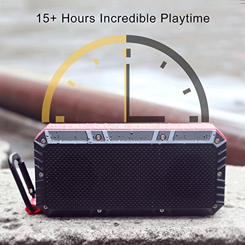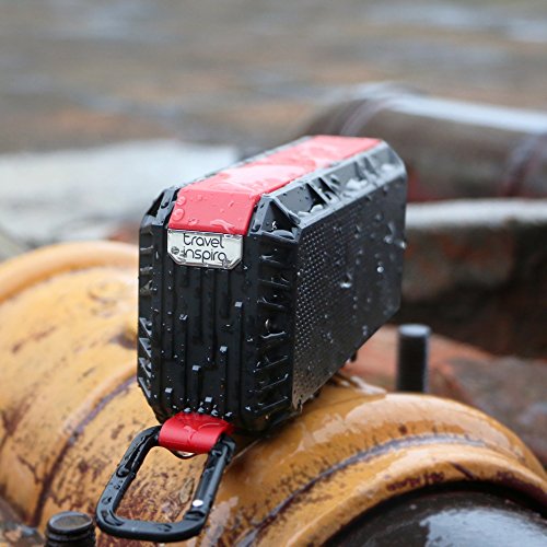 Travel Inspira Waterproof Bluetooth Speaker, V4.2 Portable Wireless Speaker with Bonus Carabiner 10W Subwoofer IPX6 - 2,200mAh Rechargeable Battery 15 Playing Hours Hands-free Calling