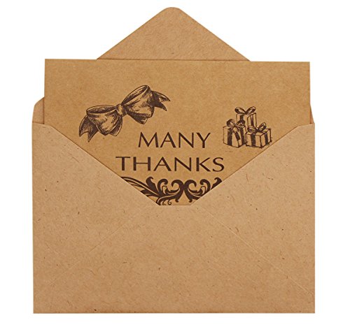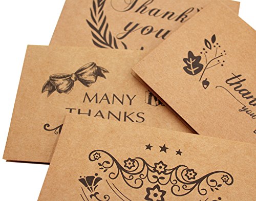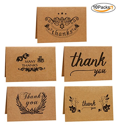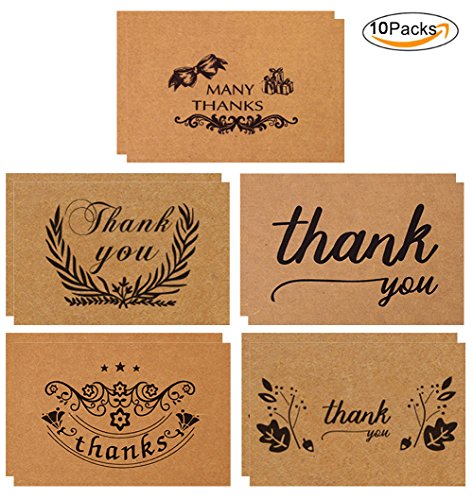 -. Feature : Card finished size: 15X10 cm/5.90x3.94inch,Kraft paper / Card pack contains 10 thank you note cards with 5 different pattern. Design is printed in black ink,Blank Inside / Thick high quality matte cardstock makes them easy to write on / These cards are an ideal way to thank guests following an event with a rustic, antique or vintage theme / These are perfect thank you cards set for wedding, shower, birthday, graduation, party and more, suitable for rustic, country and vintage themes.