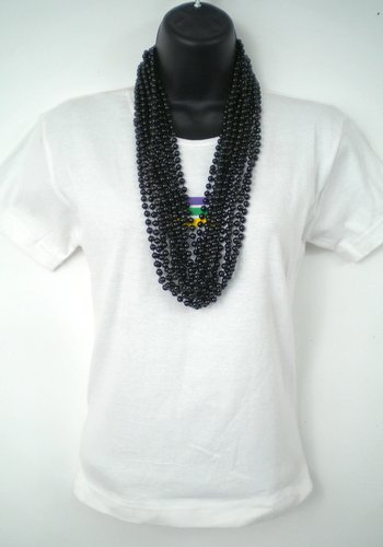 Mardi Gras beads that have a multitude of uses. To gain access for paid events, to add sparkle and color for your school team events or corporate functions, great for home parties to add that little something to your party theme. 33" of 7mm thick beads of continuous color made of bright, shinny durable plastic.--33 inch 07mm Round Metallic Black Mardi Gras Beads - 6 Dozen (72 necklaces)