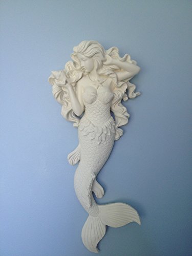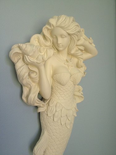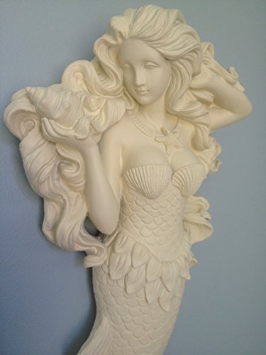 -. Title : Flowing Hair Mermaid with Starfish Necklace Wall Sculpture