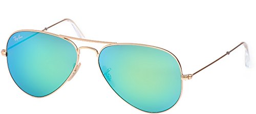 Ray Ban Aviator Sunglasses RB3025 112-19 Matte Gold Frame, Green Mirror Lenses (58mm)