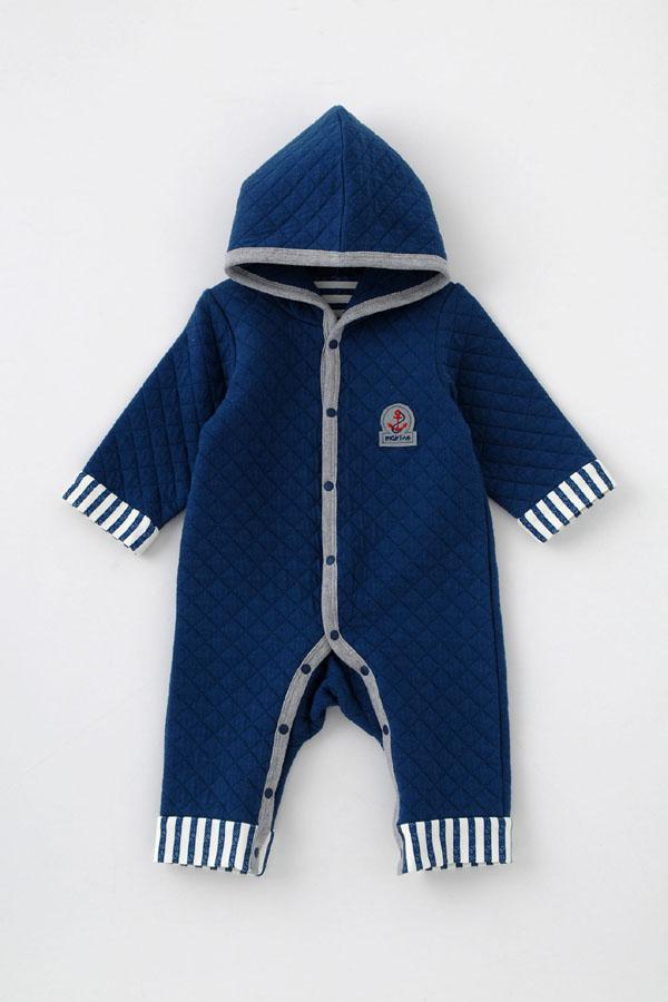 | お出かけにぴったりな防寒カバーオール。ベビーカーにも乗せやすくヘビロテ間違いなし!フード付きで頭もあったか。 |