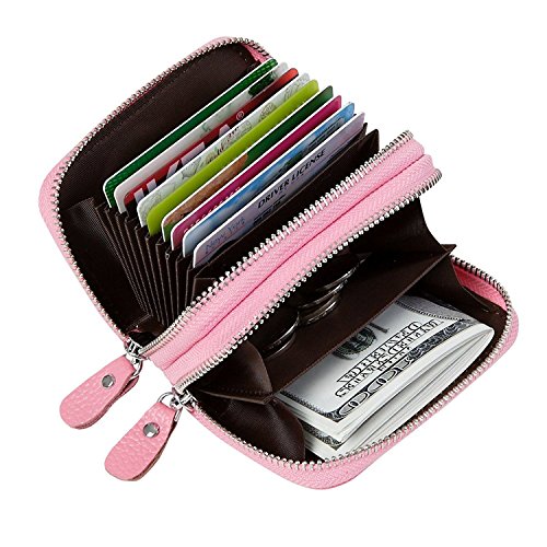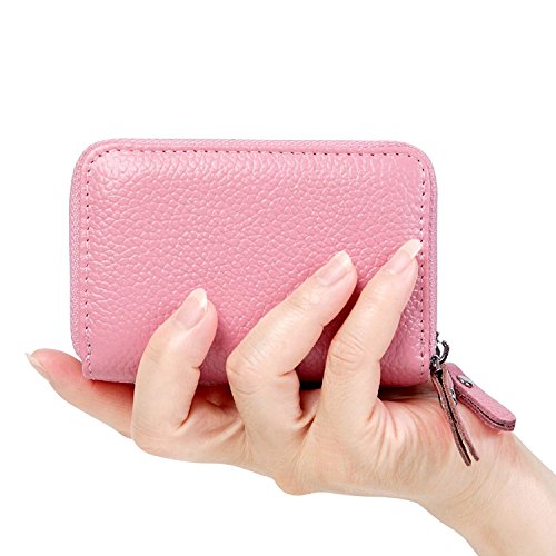 Women's Genuine Leather RFID Secure Spacious Cute Zipper Card Wallet Small Purse Card Case Holder