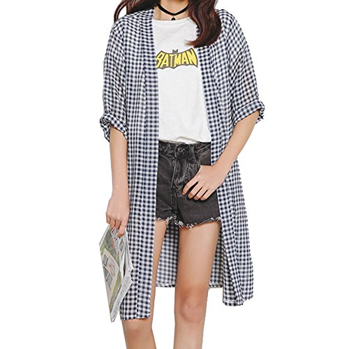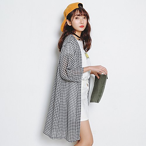 -. Title : pazuru 春 夏 カーディガン UVカット 紫外線カット 日焼け対策 冷房対策 カーデ ロングカーデ  体型カバー シャツ UVカバー チェック柄 チェックカバー おしゃれ レディース ロングカーディガン 薄手 着痩せ 体型カバー レディース 透け感
