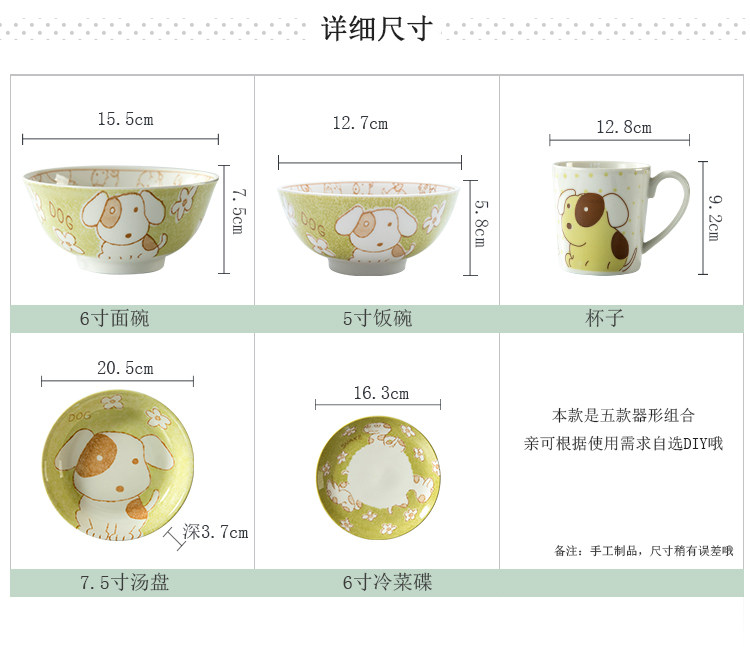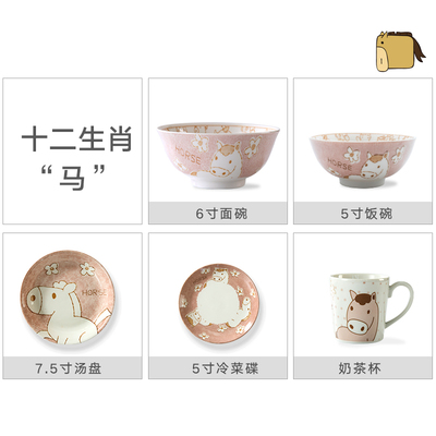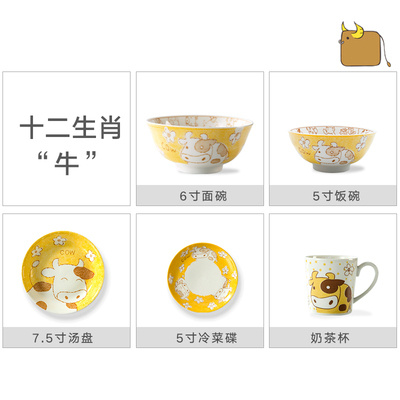 景德镇 卡通工房 十二生肖 盘子碗碟 家用碗筷日韩式组合餐具套装
