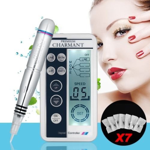 Studio : Kosmo Supply Publisher : Kosmo Supply Binding : Misc. Product Description - Multifunctional machine, both eyebrow tattoo and body tattoo. - 3.5mm Machine plug. - Built-in Swiss import motor. B. Power for Permanent Eyebrow Makeup Machine Multi-function tattoo and eyebrow tattoo with LCD power combines a tattoo eyebrow tattoo a multi-function dc power supply, the perfect curve design and hand touch tone screen, can be suitable for all tattoo and eyebrow tattoo machines, can switch between two machines at the same time. The machine is light, and easy to carry. Feature: Use the Taiwan Chip motherboard, not burning by long time use, and make the power supply has long life. The power will shut down automatically when the voltage overload, which it's safe and reliable. It can switch between two machines at the same time, makes the operation more efficient. Working time can adjust at will use probability size, suitable for all kinds of parts and skin. Working voltage : 100-240V, suitable for global use. Rated running power : 0-12V, suitable for all tattoo machines use. With manual and brake pedal switch can make the operation more convenient to control. Computer LCD can automatic display power, operating time and switch data. C.Tattoo Foot Pedal Switch Material: Silicone. Stable, don't skid. Operation is multifunctional, can match all tattoo power supply. D .Aluminum alloy Bracket E.7pcs needles Material: Aluminum alloy. Use soft silicon, which it's not easy to slide when the machine starts. Details: Permanent Makeup Tattoo Kits With LCD Power Supply Needles -Work in brow,eye,lips,medical model -lightweight and flexible -applicable for various skin types -suitable for every field of work -extreme running smoothness -simple adjustment of puncture depth -rapid changing of cartridges -ergonomic adjustment of the handle bar -top-quality and technical innovation 0
