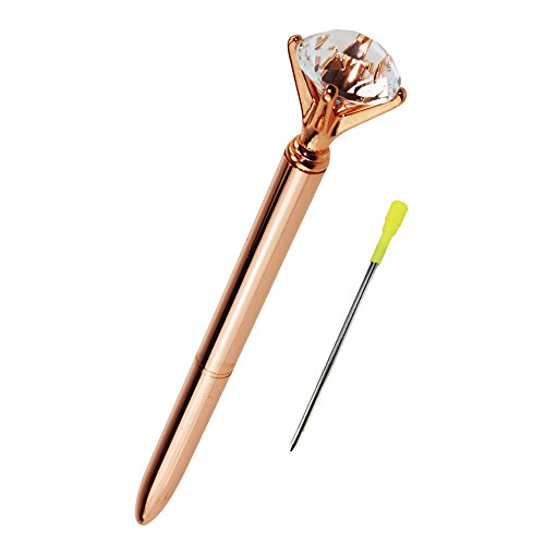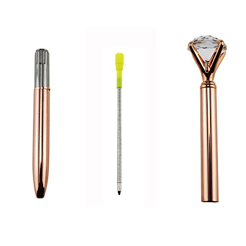 Beautiful and Unique Design:The edge of the pen is attached with a crown/scepter shaped clear diamond crystal which enhances the elegant look of the ballpoint pen