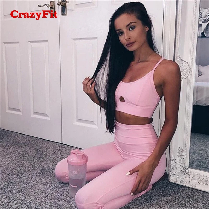 Sports Wear For Women Gym Color:Pink Solid Sportswear For Women