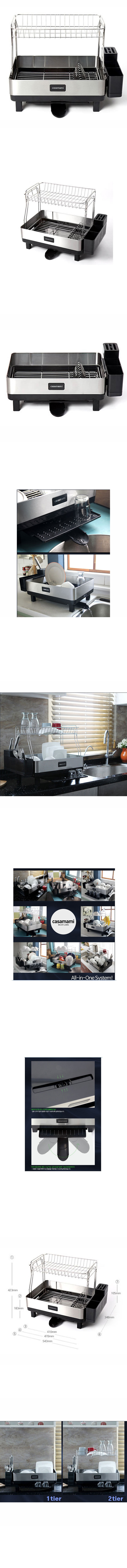 [CASAMAMI]Dish Drying Draining Rack 2tiers Dish Cup Tray Spoon Knife Holder Storage Kitchen Organizer