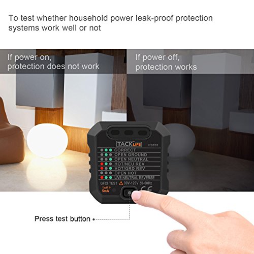 - ▲GFCI TEST BUTTON - This versatile tester checks US power outlet sockets for correct wiring and trip function for GFCI. It tests your protection system to ensure the household electrical safety. It is better to protect your security against the risk of electric shock