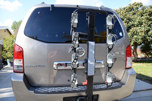 - Feature : Hitch insert fits 2" receiver hitches / Quick set carry arms "snap" into place right out of the box / Dual compound tie-down cradles & quick set straps individually secure and protect bicycles / Internal tilt-away release allows for easy lift gate access / No-wobble bolt(s) eliminates movement of rack inside of hitch