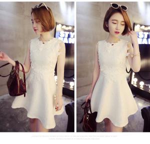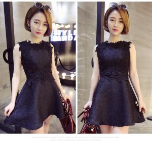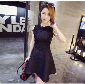 3Dフラワー ミニ丈ワンピース ドレスワンピース フレアスカート ノースリーブ 上品 ガーリー プチプラ ハイウエスト