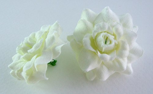 (50) Silk White Roses Flower Head - 1.75" - Artificial Flowers Heads Fabric Floral Supplies Wholesale Lot for Wedding Flowers Accessories Make Bridal Hair Clips Headbands Dress