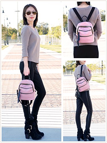 -. Feature : HIGH QUALITY: Supple PU leather; soft, durable and easy to clean. Heavy-duty genuine metal zippers glide smoothly and open easily. / PRACTICAL: Multiple pockets, inside and out. 3 external zippered pockets. 1 internal zippered pocket on back, 1 small internal pocket on front. / COMFORTABLE: Backpack-style purse evenly distributes weight on both shoulders. Ideal for reducing back pain you have when you carry a normal purse. Adjustable shoulder straps. / STYLISH AND HANDS FREE: Enjoy hands-free while you still look chic and fashionable! Women, ladies, girls and teens will love this cute, designer bag. / WARNING: This mini backpack is ideal as a small purse, but is NOT large enough to hold a binder or folders and can not be used as a student backpack with similarly large materials. Please see pictures for reference. Product Dimensions: 9" tall x 8.5" wide x 4" deep. It is truly a mini beauty!