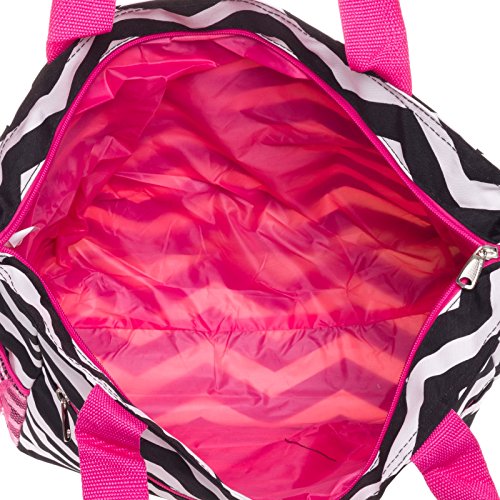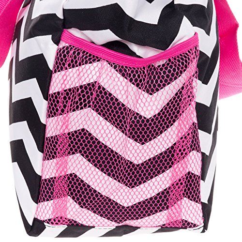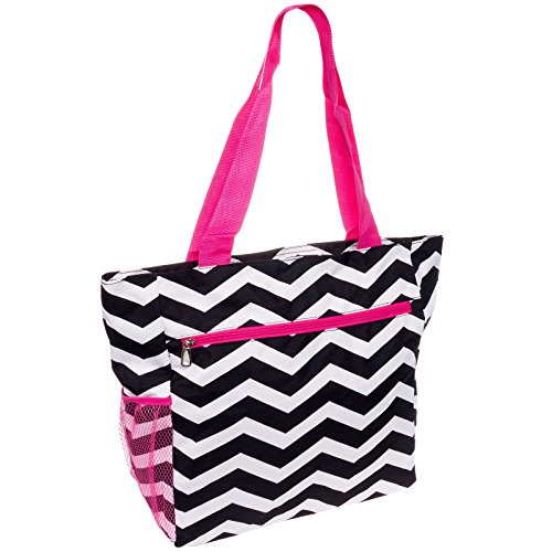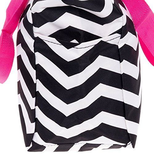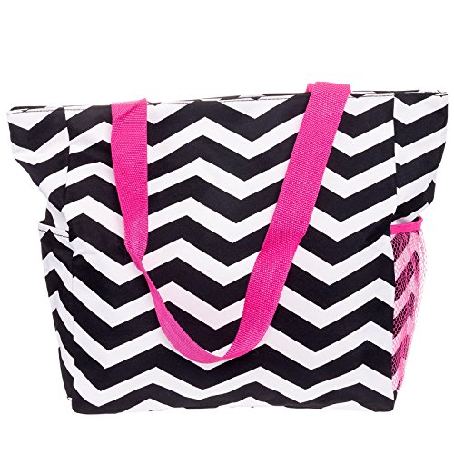 SilverHooks Womens Chevron Beach Tote Shopper Bag (Black & White w/ Pink Trim)