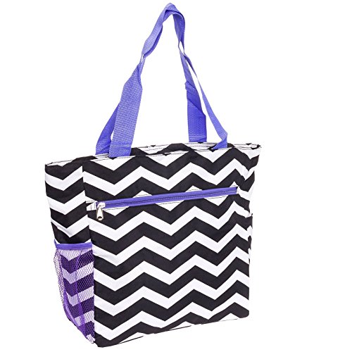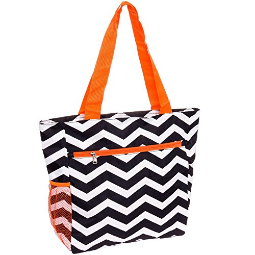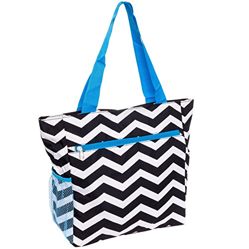 This Chevron Beach Tote Shopper Bag from SilverHooks is ideal for taking to the beach, pool, or shopping. The lined interior with polyester exterior can be quickly cleaned off in the event of a spill while still providing you with a rugged design that won't easily tear or puncture. The spacious, zippered main compartment is perfect for storing towels, groceries, or clothes so whether you're hitting the gym or heading out for the day with your family you'll be sure to stay neatly organized. Two additional slip pockets and a zippered pocket are placed on the exterior for quick access to your keys, wallet, or credit cards. Measures 18.5" x 13.75" x 6.5".