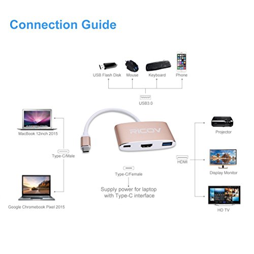 The USB 3.1 Type-C/Male to HDMI + USB 3.0 A + Type-C/Female adapter is a perfect companion for 12 inch Macbook, Google new Chromebook Pixel and other devices with type C port.