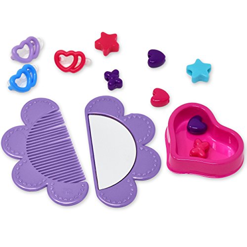 ACCESSORIES - 3 different color clips, a brush and mirror set, heart and star beads so your little one can