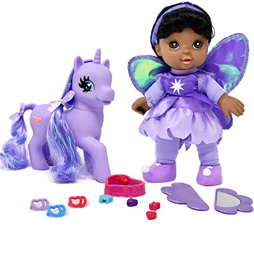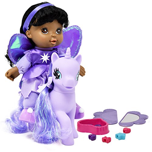 SUPER CUTE LOVABLE DOLL AND PONY SET: This fairy doll and pony offers an incredible way to keep your little one entertained for hours and gives her a best friend that she can hang out with. The doll and pony also come with a lot of accessories, 3 different color clips, a brush and mirror set, heart and star beads so your little one can create beautiful hairstyles.