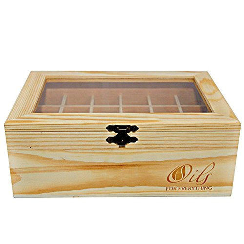 New Essential Oils Wooden Box By Oils for Everything Showcases and Holds 24 Essential Oil Bottles 5ml - 15ml with See Through Window