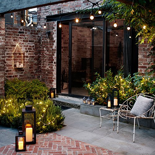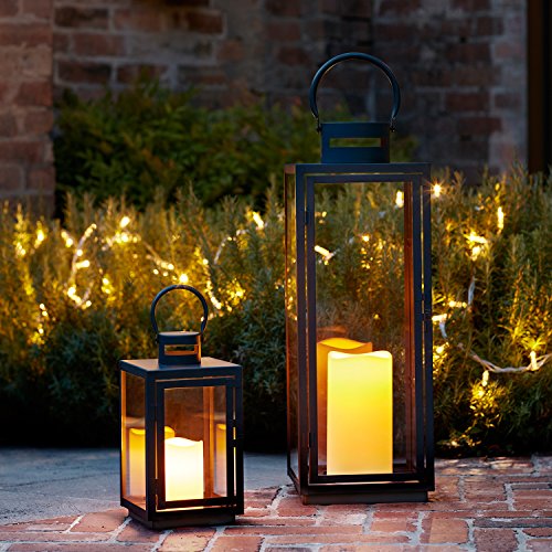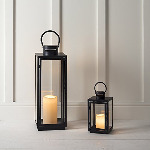 Black Metal Battery Operated Fully Weatherproof Outdoor LED Garden & Patio Flameless Candle Lantern