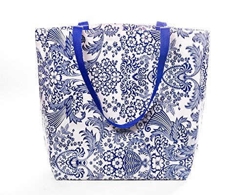 Product Description Made of heavy duty, easy to clean oilcloth that is lined in the same durable fabric. Our handles are designed to fit over your shoulder. These Market Bags fold up flat and won't take up much room in your suitcase. With two generous pockets, this gives you enough room to carry anything you need! Hand washable or simply wipe clean with a soapy spong, disinfectant wipes, or clean with your favorite kitchen spray - with or without bleach. Read manufaturer's instructions on cleaner first. Handmade in Philadelphia by the oilcloth experts! DISCLAIMER: Webbing and lining may vary! 0