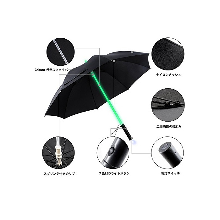 원본상품명: YIER 長傘 光る傘 旅行傘 紳士傘 耐風傘 LED 7色 メンズ 子供用 梅雨?策 夜間?? ブラック