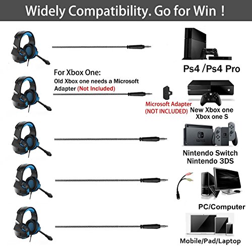 【Excellent Compatibility】Plug &play, no driver needed. With an 1 to 2 adapter included, the headset is suitable for different scenes. Support PlayStation 4, New Xbox One, PC, Nintendo 3DS, Laptop, PSP, Tablet, iPad, Mobile Phone. Please note you need an extra Microsoft Adapter (Not Included) when connect with an old version Xbox One controller and the headset is not compatible with PS3 and Xbox360.