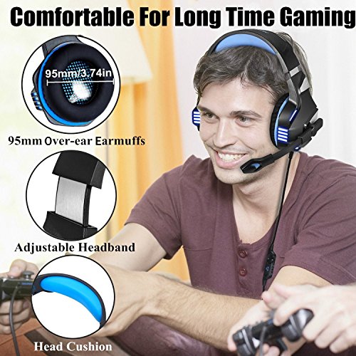 【Extreme Comfort】 Professional gaming headset with super lightweight design which is less than 370g. Soft and comfortable headband and over ear earmuff, no pressure no heat. Your extreme comfort could be ensured even after long time wearing. The adjustable headband can fit heads of different size, suitable for men, women, teenagers and other groups.