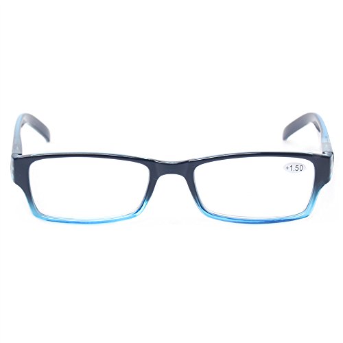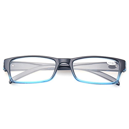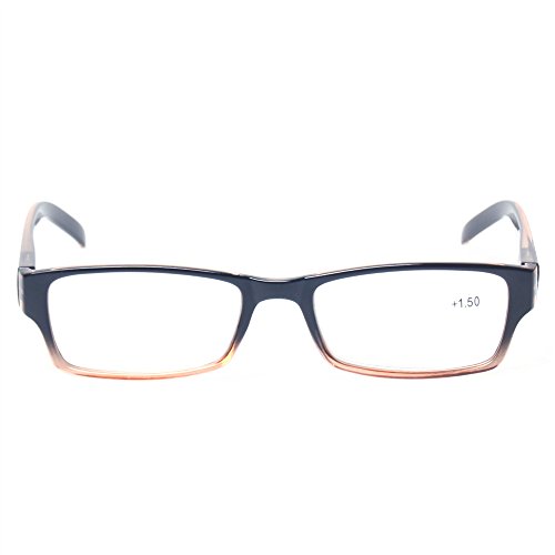 -. Feature : Classic shape fashion frame reading glasses with a fun and colorful design for a fresh look. Universal size fits most face shapes. / 4 pairs of men and Women reading glasses at 1 low price with colors available: Gray,Brown,Blue and Transparent. / Stylishly designer reading glasses. Wearing these reading glasses at home, in bed, at the office, or wherever you need them, means you'll always look sharp, and see sharpe. / Crystal clear vision,they really work well when you can't read those fine prints on newspaper etc. / Fashion,its stylish design will meet your need to look cool,beautiful and makes you shine.