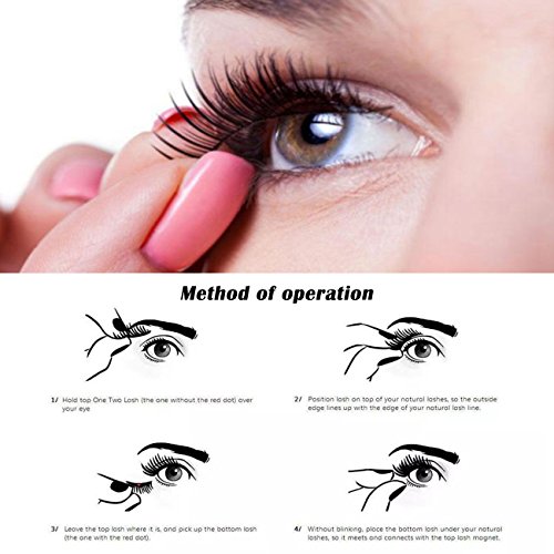 -. Feature : Waterproof false magnetci eyelashes, long, lush and naturally beautiful. Perfect for everyday wear / Lightweight fake magnetic eyelashes will not make you feel wearing fake lashes at all, more comfortable all day / 100% handmade fake eyelashes, you will fall in love with this magical tool for your flawless look! it perfect for all your party / The false eyelashes can be reused for many times with good care, saving you the money to buy tons of false lashes / Package include 2 Pairs of Magnetic Eyelashes(4 pieces