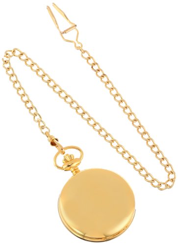 -. Feature : 14k gold-plated brass 47mm double hunter case with a matching curb chain / Skeleton dial with roman numerals / 17 jewel mechanical movement / Deluxe gift box