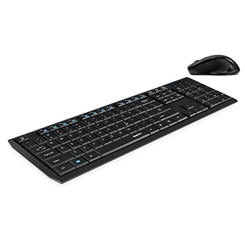 WIRELESS KEYBOARD AND COMPUTER MOUSE; Strong 2.4GHz wireless connection. A single mini USB receiver connects both the 104 keys wireless keyboard and mouse with just one USB port, delivering High precision, Responsiveness and High Stability.