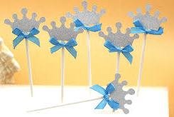 - Includes 12 Silver Glitter Crown Cupcake Toppers with Turquoise Blue Bows