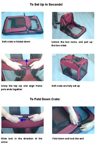 -. Binding : Misc. -. Brand : masterpet -. Feature : Made by steel frame / Portable, easy to carry and fold to less than 4 inch thick for easy storage / Vinyl-coated mesh on all four sides and top provides visibility and ventilation / Panels on top and front unzip for easy access / Includes a removable waterproof polypropylene tray -. Label : masterpet -. Manufacturer : masterpet -. MPN : 9002S-maroon -. PackageQuantity : 5 -. PartNumber : 9002S-maroon -. ProductGroup : Pet Products -. ProductTypeName : PET_SUPPLIES -. Publisher : masterpet -. Studio : masterpet -. Title : Small Maroon Pet Soft Crate/carrier for Travel, Indoor and Outdoor