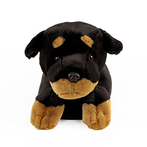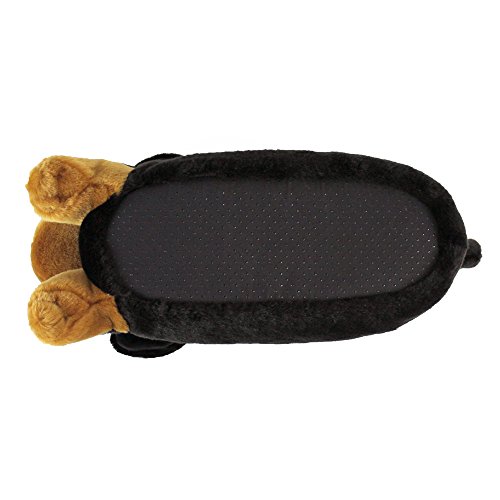 -. Feature : AUTHENTIC DETAILS - A broad muzzle, warm brown eyes, and sturdy paws perfectly capture the robust Rottweiler breed. You'll want to pet this glossy black coat, complete with mahogany markings on nose, paws, and forehead. / ULTIMATE COMFORT - Keep your feet warm and cozy with full foot coverage, super soft fur, and pillowy filling. / QUALITY MATERIALS - Made with foam footbeds, polyester plush, and non-slip grips on soles. High quality construction will stand the test of time. / SIZING INFORMATION - Footbed measures 11" - One size fits most, up to a Women's size 12 / Men's 10.