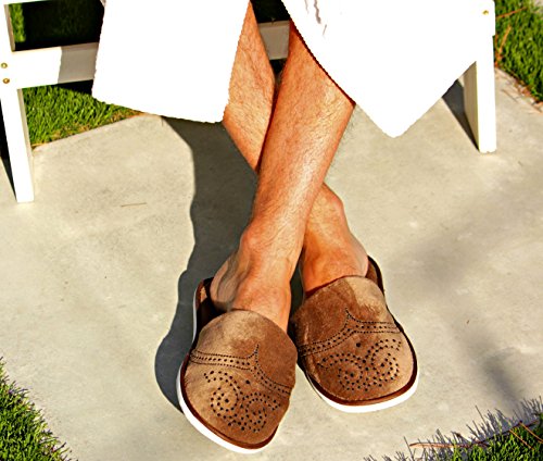 -. Binding : Apparel -. Brand : Suitzy -. ClothingSize : Large -. Color : Brown -. Department : mens -. EAN : 0733074211866 -. Feature : Look like a boss - custom wingtip embroidered design / Relax in comfort - ridiculously comfortable material rewards your every step / Dog walking approved - the soles are built tough handle the streets in style -. ProductGroup : Shoes -. ProductTypeName : SHOES -. Size : Large -. Title : Suitzy Slippers -. UPC : 733074211866