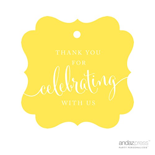 Andaz Press Fancy Frame Gift Tags, Thank You For Celebrating With Us, Yellow, 24-Pack, For Baby Bridal Wedding Shower, Kids 1st Sweet 16 Quinceanera...